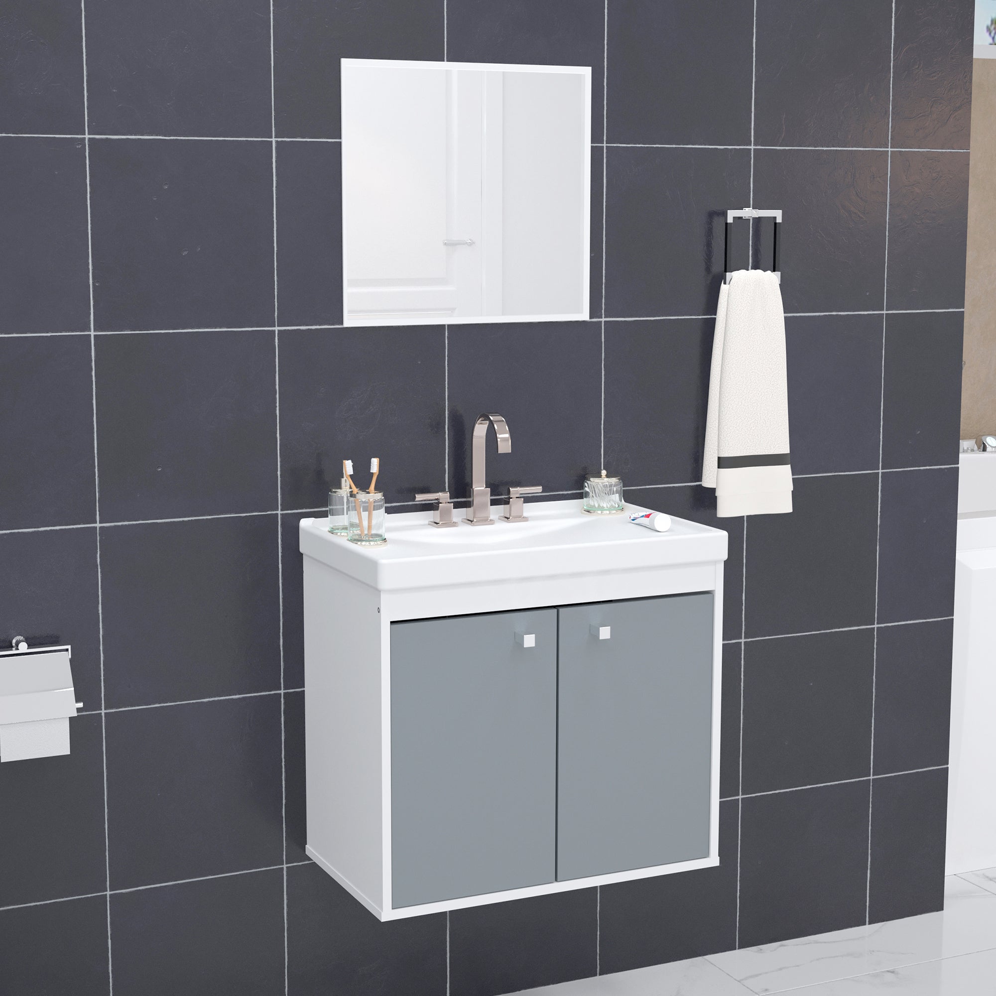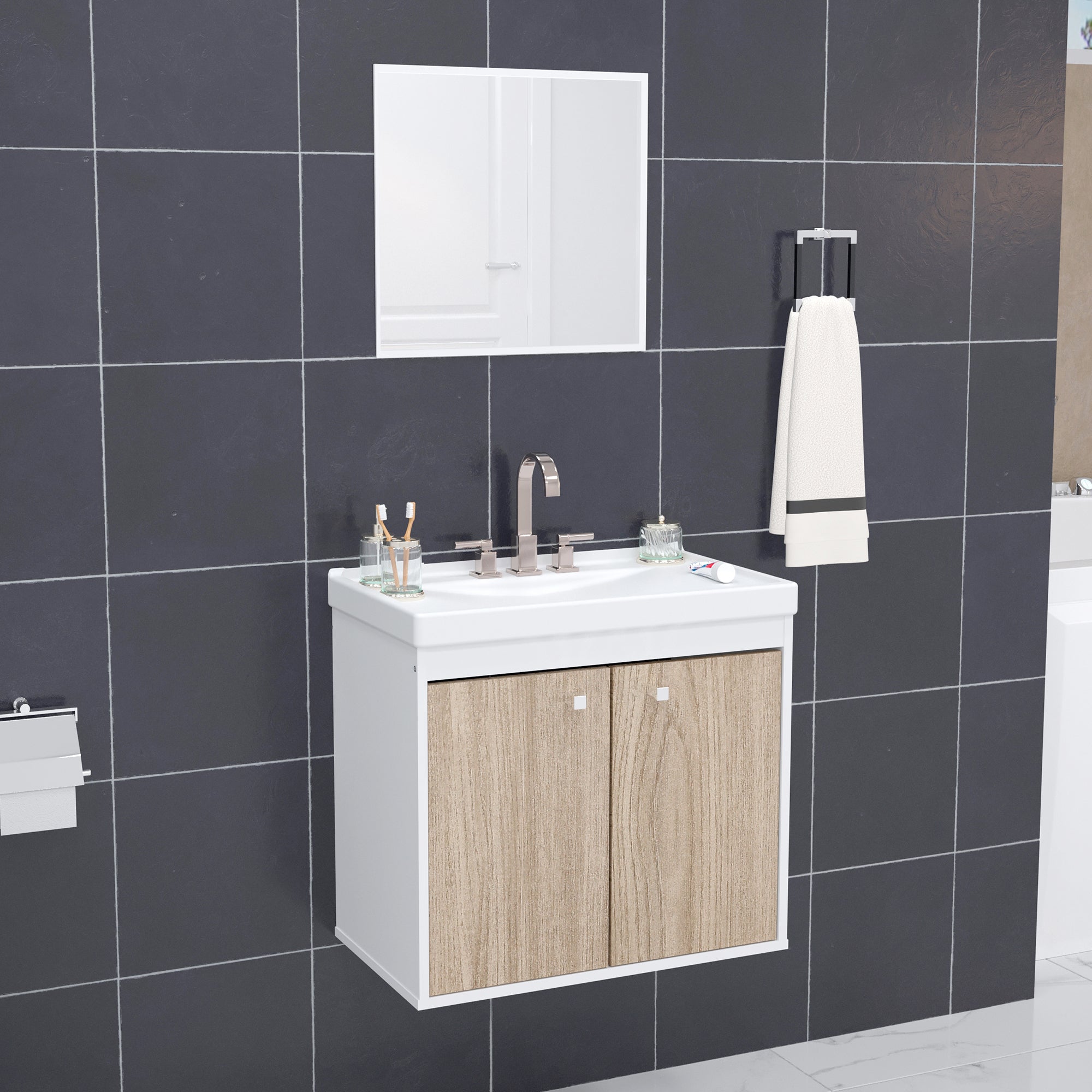 Kit Gabinete para Banheiro + Espelheira - Potenza Berlin 60cm